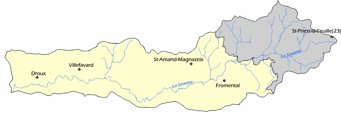 Prenant sa source en Creuse, sur la commune de Saint-Priest-la-Feuille, à environ 530 mètres d’altitude, la Semme est une rivière du nord-est de la Haute-Vienne. Elle s’écoule sur près de 51 km avant de rejoindre la Gartempe à Droux. Son bassin versant couvre 184 km², dont les trois quarts sont situés en Haute-Vienne. Le SMABGA intervient sur environ 40 km de son cours, situés dans son périmètre d’action.